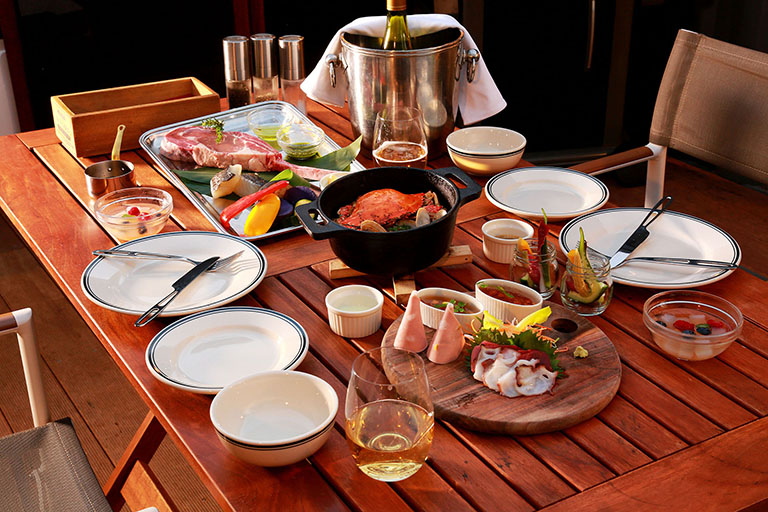 직원이 객실에 음식을 배달하며, 자신 만의 방식으로 바베큐 시간을 즐길 수 있습니다.