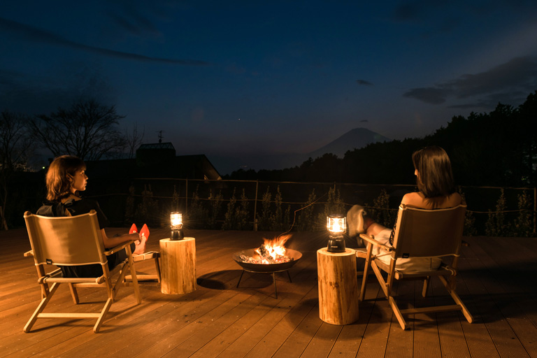 設備齊全,配有沙發,廚房,燃氣燒烤爐等,並在富士山前設有露台。